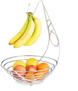 De Cosy & Trendy fruitmand met bananenhouder is een ideale keuze voor wie functionaliteit wil combineren met stijl. Dit model biedt niet alleen een haak voor bananen, maar ook een ruime fruitschaal voor ander fruit zoals appels en sinaasappels. Hierdoor heb je al je fruit overzichtelijk op één plek.